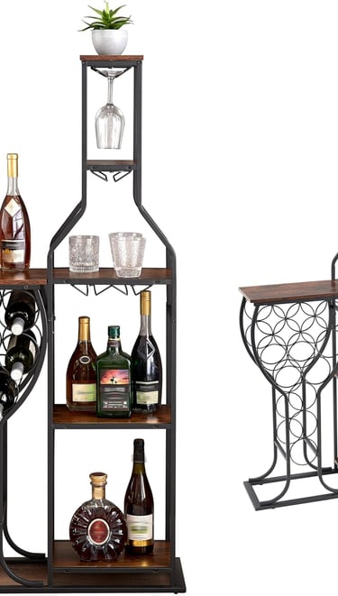 Modern Wooden 5-Tier Wine Rack Floor for 11 Bottles